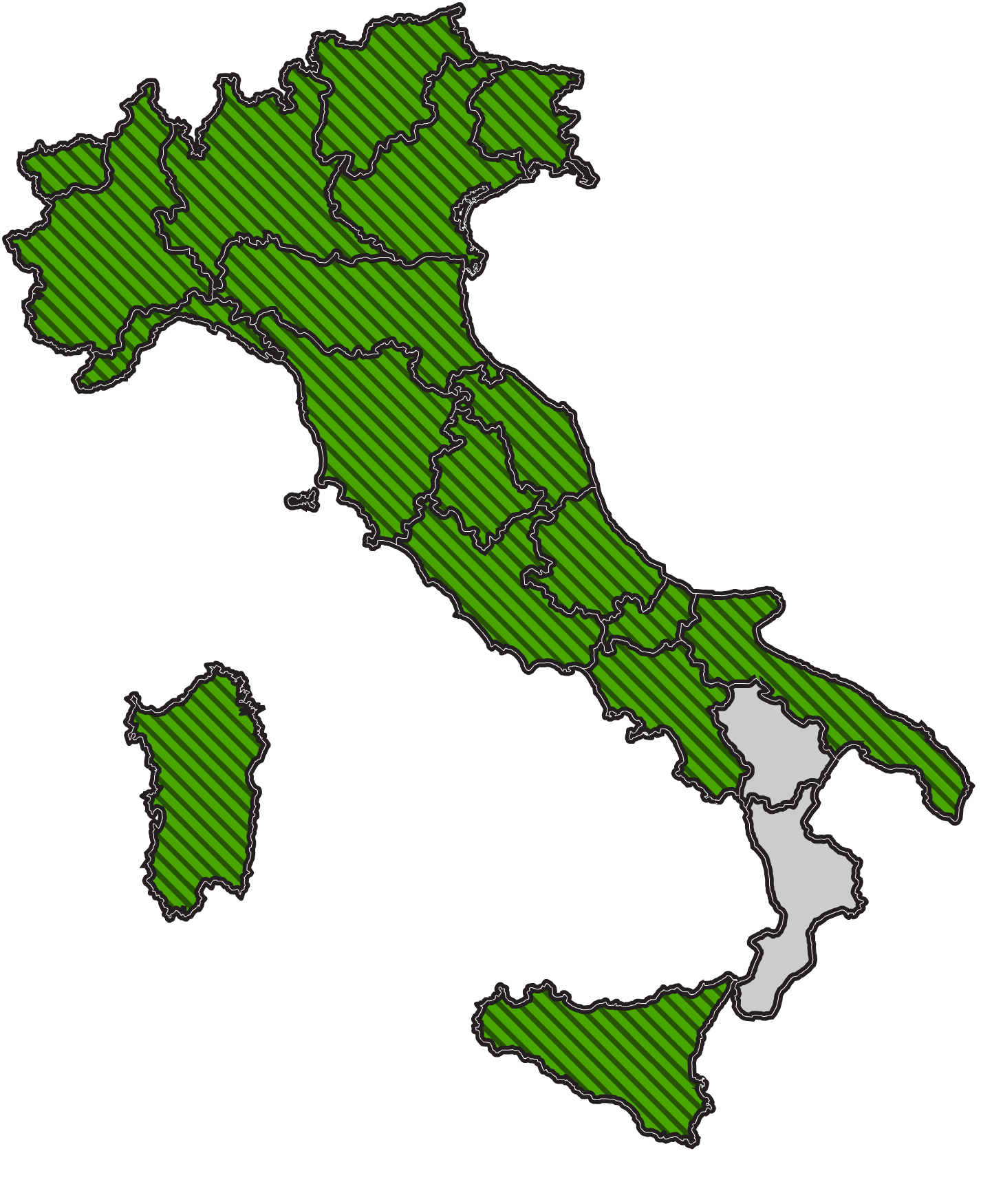 - Lombardia: Milano, Bergamo, Brescia, Como, Cremona, Lecco, Lodi, Mantova, Monza e Brianza, Pavia, Sondrio, Varese